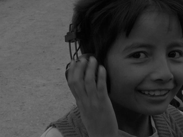 我有一个收音的麦克风,它是一个很好的交流工具。我会把麦克风递给小朋友,让他们戴上耳机,听到自己的声音。有时候我也会把摄像机交给他们,说你也可以拍一拍,这样他们都会特别开心。